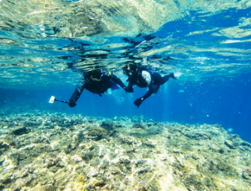 오키나와의 대표적인 해양 액티비티! 푸른동굴(青の洞窟)에서 스노클링을 하면 마치 다른 세상에 온 것 같은 기분이 듭니다.